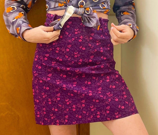 vtg 60s CUTE FLORAL MINI Skirt // vintage purple & pink patterned cotton a line preppy mod casual print school secretary student campus