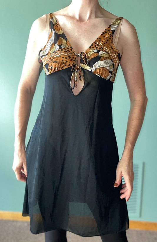 vtg 60s ANIMAL PRINT SLIP Dress // vintage mistee brand medium front tie sheer mini dress camisole teddy nightgown flowy sexy lingerie top
