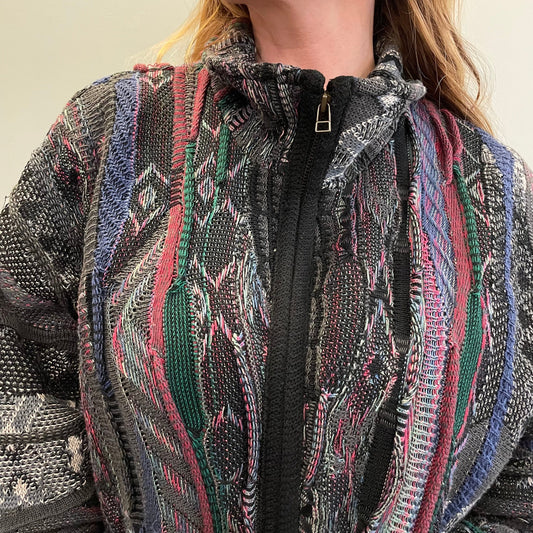 vtg 90s TUNDRA SWEATER zip JACKET ꕤ ꕤ ꕤ coogi style 3d abstract textured ꕤ ꕤ ꕤ big oversized loose fit rap hiphop biggie knit dress bright
