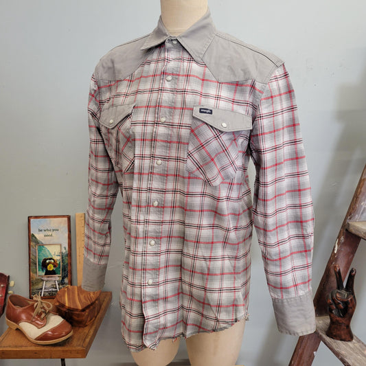 vtg 90s WRANGLER PLAID SHIRT // vintage wrangler pearl snap down mens med flannel button down western hippie retro rugged lumberjack style