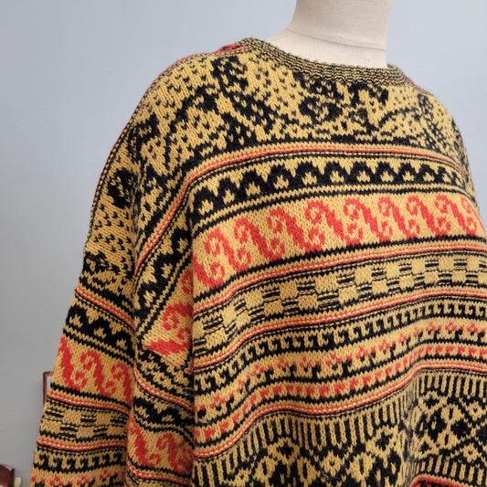vtg 90s WINONA KNITS SWEATER // vintage mens xl abstract patterned oversized slouchy thick chunky knit earth tones striped patchwork winter