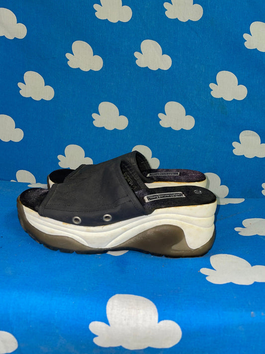 vtg 90s XHILARATION WEDGE WEDGES // black mesh platform sandals Y2k chunky heels grunge Delias slip ons beach shoes two tone sports sliders