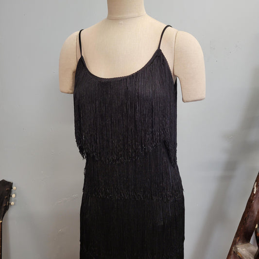 vtg BLACK FRINGE DRESS / vintage flapper style mini hw size 7/8 womens small shimmy black cocktail 1920s style holiday new years party dress