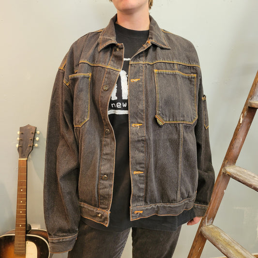 vtg y2k BROOKLYN XPRESS DENIM jacket // vintage wutang biggie rap hip hop jay z oversized jean black fat albert fubu xl southpole style