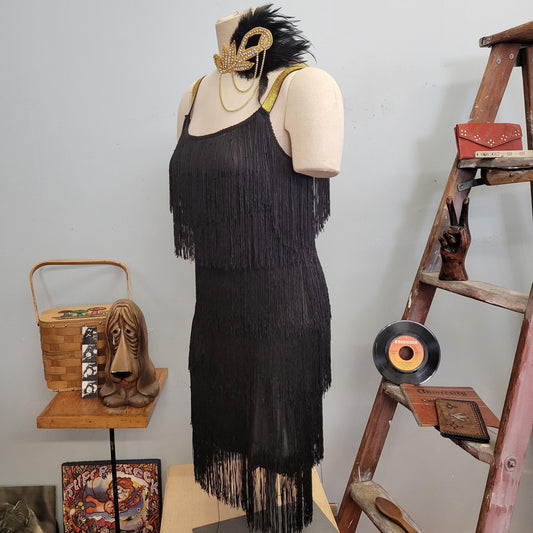 vtg y2k 1920s FLAPPER COSTUME // vintage rorox small halloween black fringe art deco Charleston gatsby dancer headpiece roaring 20s costume