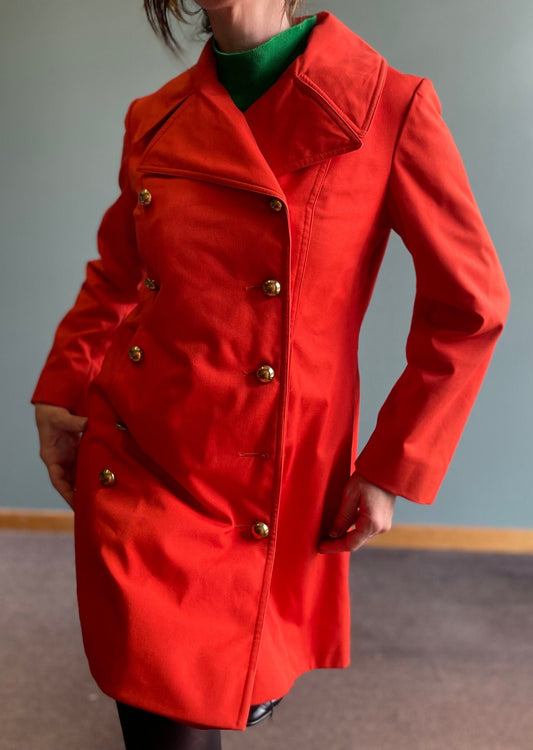 vtg 60s ORANGE MOD COAT // vintage alligator company gold buttons autumn fashion collared retro orange pea coat stroller winter trench coat