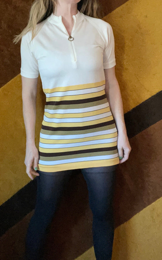 vtg 60s MOD STRIPED MINI Dress // vintage yellow & brown teen spirit short frock go go retro scooter dress space age autumn cute halloween