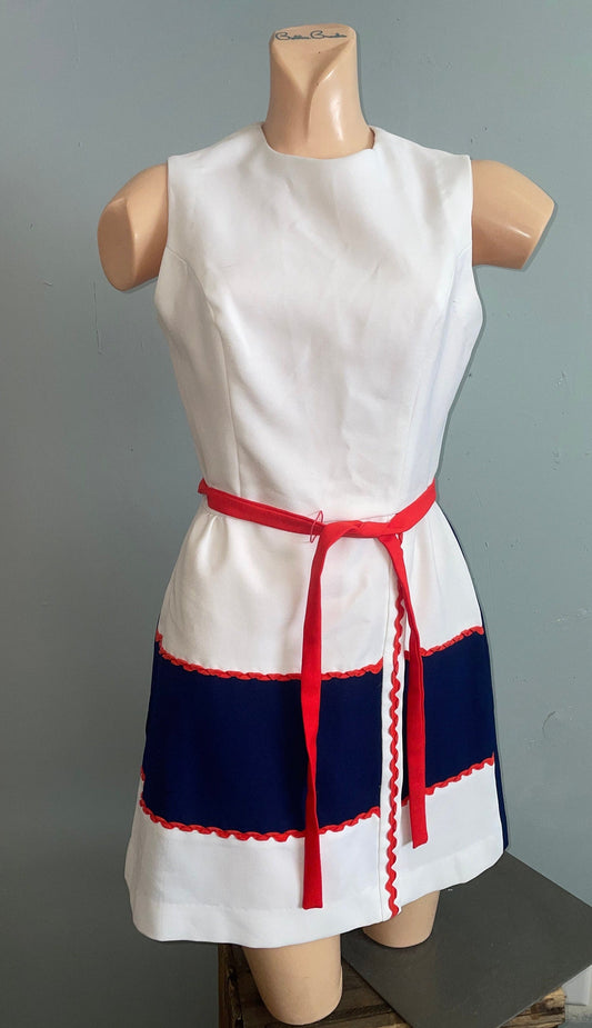 vtg 60s NAUTICAL MINI DRESS // vintage mod retro belted scooter dress twiggy edie cute twee sleeveless ric rac colorblock autumn layer style