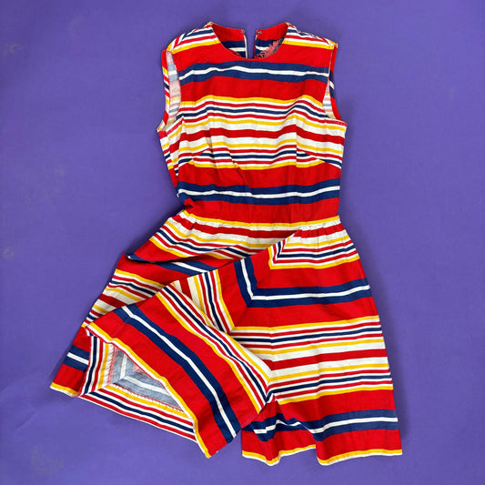 vtg 60s MOD STRIPED ROMPER // vintage primary colors nautical skorts cotton playsuit scooter dress Carol Brent mini sleeveless retro dress