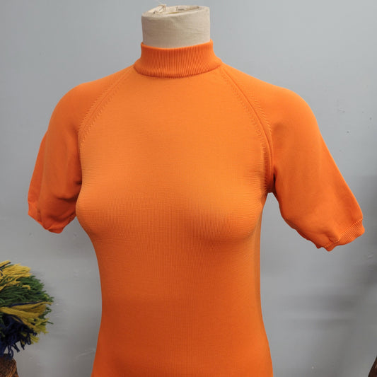 vtg 60s ORANGE KNIT TOP // vintage mod retro mock neck day glow autumn colors winter layers warm casual stylish womens fall fashion sweater