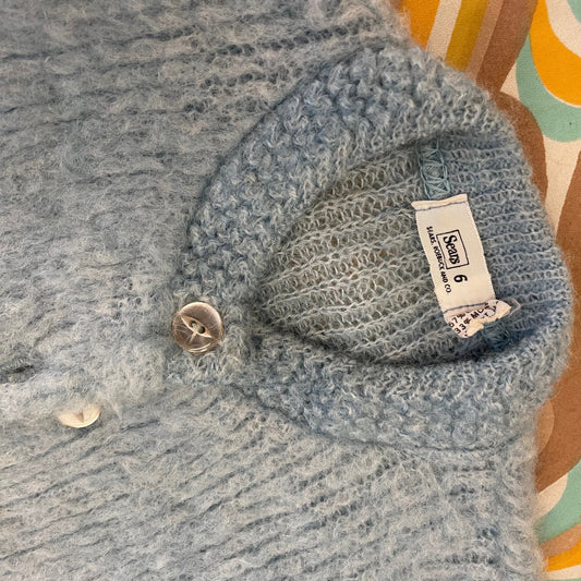 vtg 60s SEARS MOHAIR KIDS Cardigan//vintage baby blue fuzzy sweater size 6 kids retro cool kids unisex pastel rockabilly grunge sweater