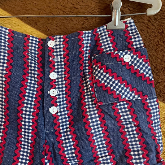 vtg 60s STRIPED HOT PANTS // high mid rise ric rac patterned trim short shorts blue red nautical button up mod kitschy hippie daisy dukes