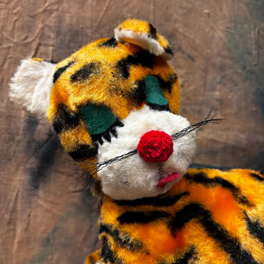 vtg 60s TIGER PLUSH // vintage dream pets style closed eyes stuffed animal retro carnival prize plush toys mcm cute big eyes baby room decor
