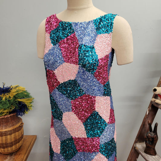 vtg 60s SEQUINED PATCHWROK DRESS // vintage neusteters womens small multicolor party dress holiday new years festive sparkly cocktail dress