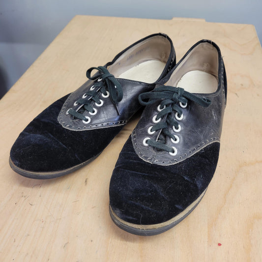 vtg 60s VELVET LEATHER OXFORDS // vintage saddle shoes size 9 womens du flex lace up mod retro two tone saddle oxford dress shoes cush crepe