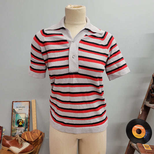 vtg 60s STRIPED COLLARED SHIRT / vintage jc penney towncraft medium retro striped pointy collar tri toned rockabilly bowling style mod funky