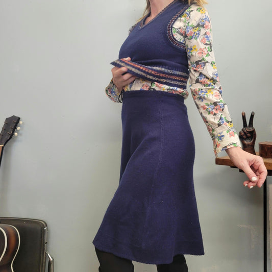 vtg 70s 3 PIECE SWEATER SET // space dye striped skirt set tank sweater mini skirt and groovy cardigan mod boho retro hippie jackie burkhart