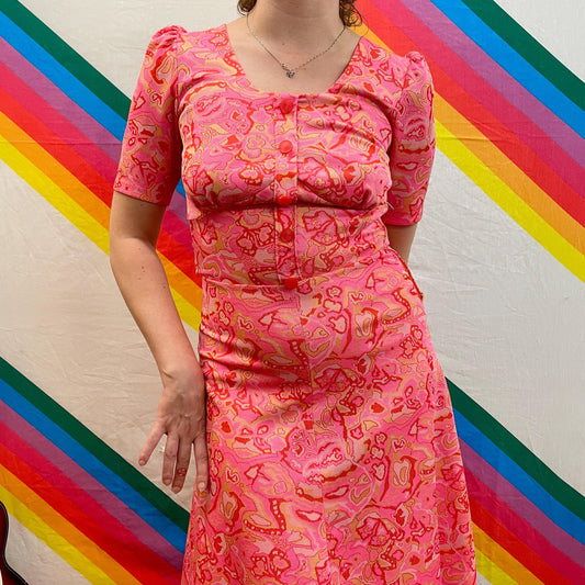 vtg 70s ABSTRACT PINK LAVA Lamp dress // trippy psychedelic acid drip funky neon retro belted button up midi autumn fall halloween party