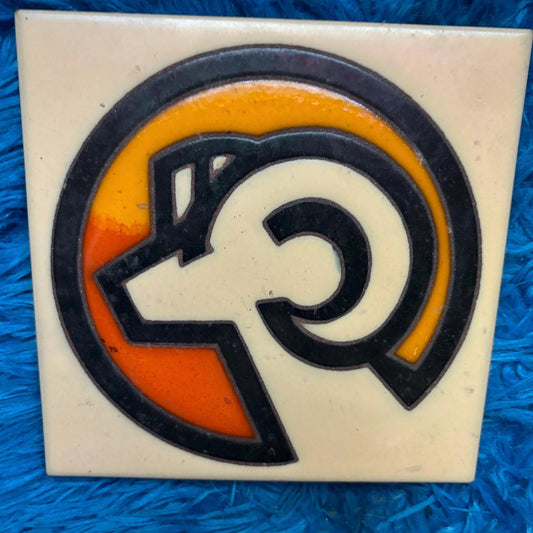 vtg 70s ARIES TILE COASTER // vintage made in Italy 6”x 6” ceramic tile retro colorway orange yellow tones hot plate cork legs pan coaster