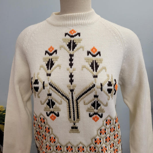vtg 70s ABSTRACT EMBROIDERED SWEATER // vintage miss holly medium autumn tones ornate floral stitch mockneck creamy beige orange retro style