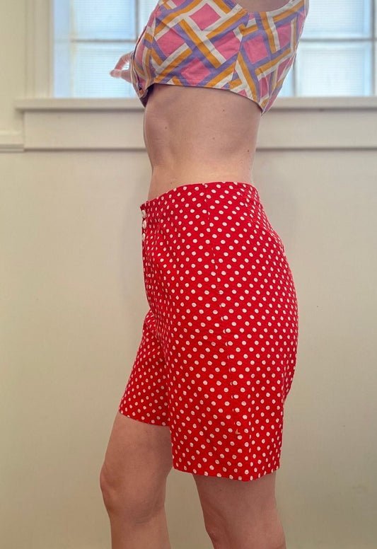 Vintage 60s Red Polka Dot Seersucker Pin Up Shorts / Rockabilly Beach Shorts