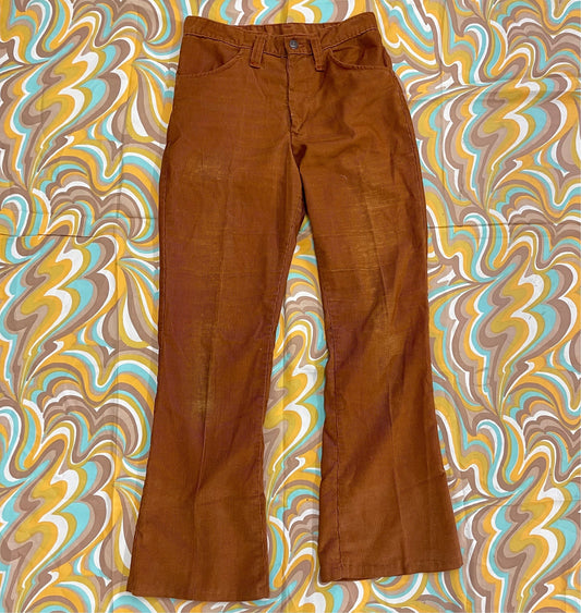 vtg 70s BROWN SEARS CORDUROY pants 27 wasit // distressed kings road mens flare boot cut wide leg hippie grunge jeans cut style rock disco