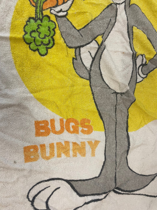 vtg 70s BUGS BUNNY TOWEL // vintage whats up doc looney tunes warner bros cartoon beach towel fabric scraps repurpose craft towel retro