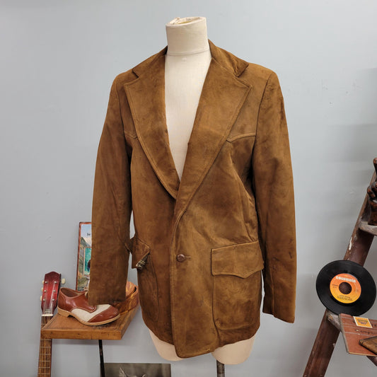 vtg 70s BROWN SUEDE JACKET // vintage sears leather shop coat size 40 mens leather blazer retro oversized western autumn winter dress coat