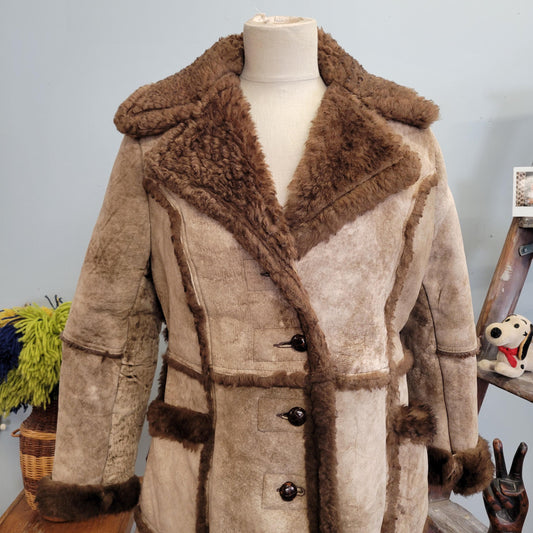 vtg 70s BROWN SHERPA COAT // vintage suede fur parka skalar 16 sheepskin shearling heavy warm ranch coat unique hippie western boho style