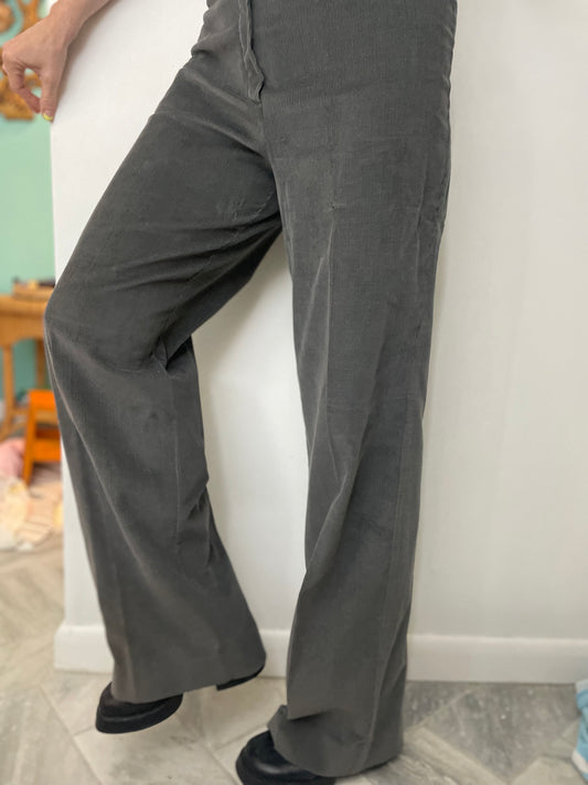 vtg 70s CORDUROY BELLBOTTOMS // vintage high waisted flare leg pants ribbed trousers bare back gray pants autumn casual earth tones winter