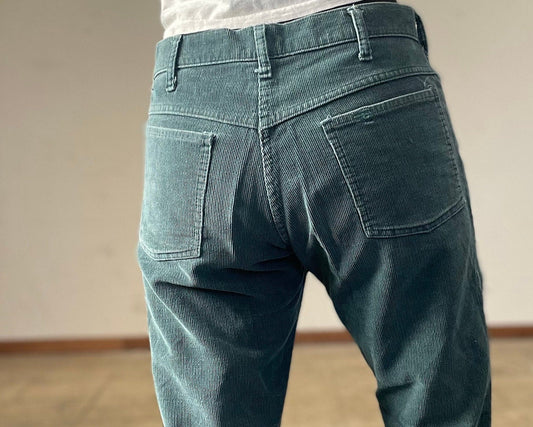 vtg 70s CORDUROY BELL BOTTOMS // vintage mid rise 33/34 unisex jeans soft faded distressed green autumn style winter hippie casual fashion