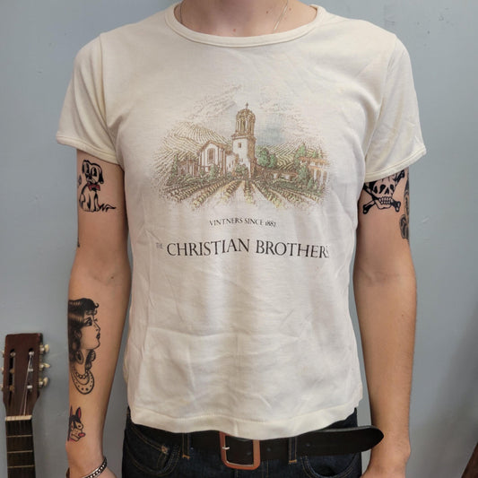 vtg 70s CHRISTIAN BROTHERS wine TSHIRT // vintage femme cut ribbed stretch short sleeves 1970s shirt tee alcohol vineyard grapes merlot
