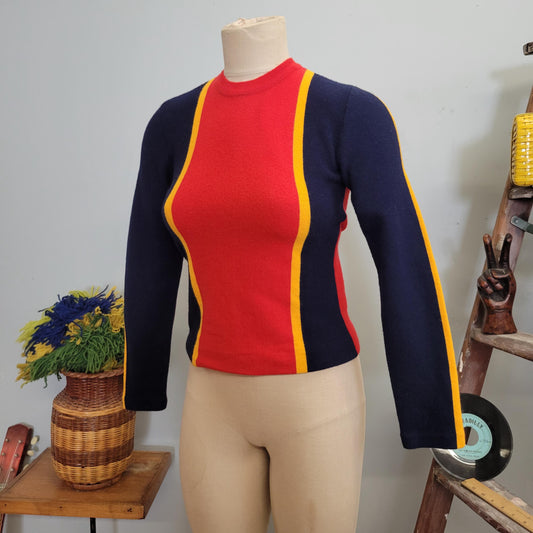 vtg 70s COLORBLOCK RETRO SWEATER // vintage anba of austria medium nautical striped cropped fitted cute knit autumn vibes multicolor shirt