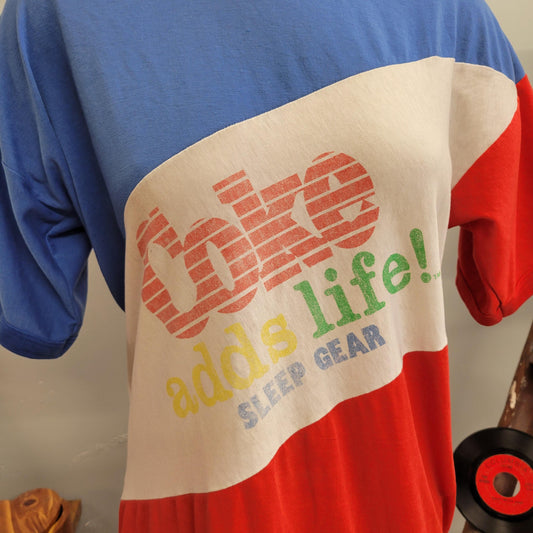 vtg 70s COCA COLA Adds LIFE! shirt / vintage oversized t shirt soft paper thin coke sleep gear osfa retro color block striped cute slouchy