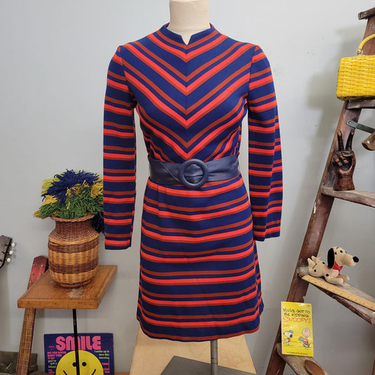 vtg 70s CHEVRON BELTED DRESS // vintage medium womens retro mod autumn cottage winter stylish metro sassy flirty funky movie star unique fit