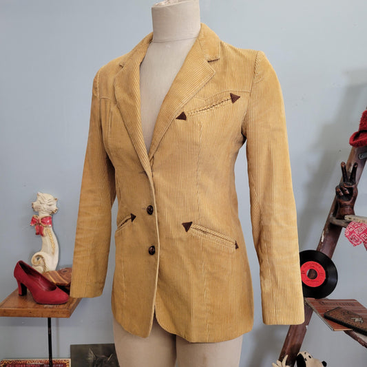 vtg 70s CORDUROY BLAZER // vintage changing scene 7/8 womens medium disco retro arrows rockabilly revival beige neutral tones autumn style