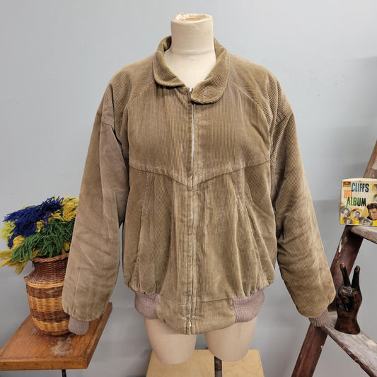 vtg 70s CORDOROY SHERPA JACKET // vintage westwind sportswear xl mens beige ribbed neutral tones sherpa lined autumn winter overcoat parka