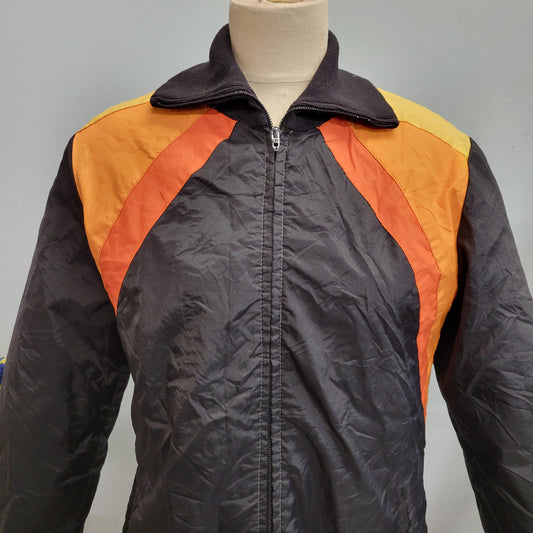 vtg 70s COLORWAY SKI-DOO Jacket // vintage bombardier sunset medium black orange light puffer snow mobile winter waterproof cute retro fall