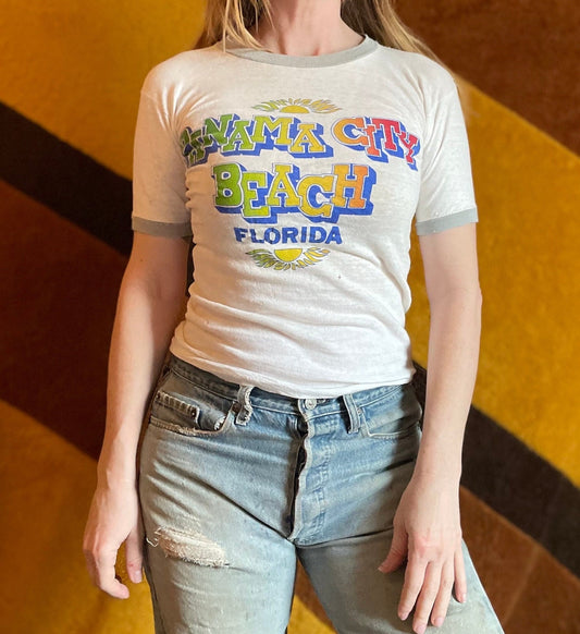 vtg 70s DAYTONA BEACH SHIRT // vintage youth large multicolored florida ringer paper thin distressed vacation tourist souvenir graphic tee