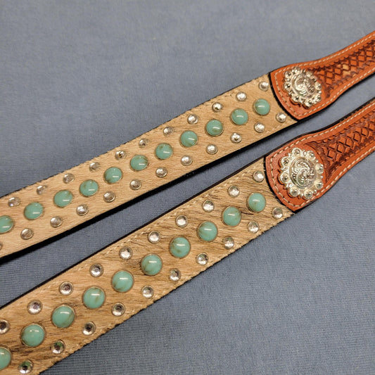 vtg 70s COW FUR BELT // vintage leather size 32 unisex bling leather belt turquoise bejeweled western rodeo conch cowgirl retro hippie biker