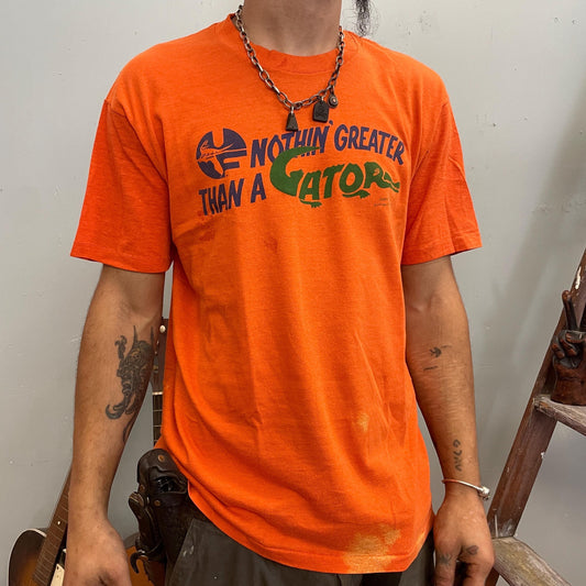 vtg 70s GATOR GRAPHIC TEE // vintage funny florida orange t shirt nothing greater than a gator ironic hipster water print animal logo screen