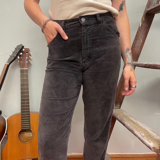 vtg 70s GRAY CORDUROY PANTS // vintage light black slate grey velour ribbed straight leg boot coot autumn casual retro high rise beatnik mod