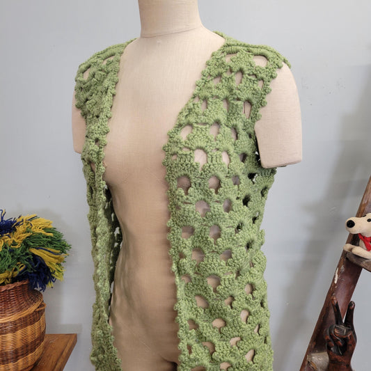 vtg 70s GREEN KNIT VEST // vintage crochet sweater medium womens mint sage pastel green earth tones chunky knit waistcoat autumn layers top