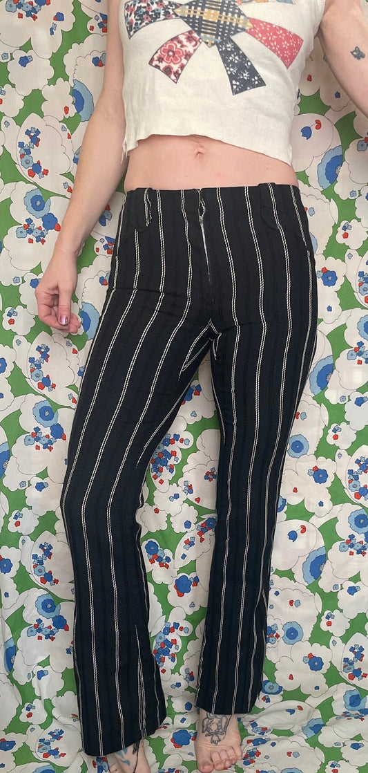 vtg 70s H BAR C PANTS // vintage black & white striped rayon trousers hip hugger flare leg boot cut western retro mod minimalist fall winter