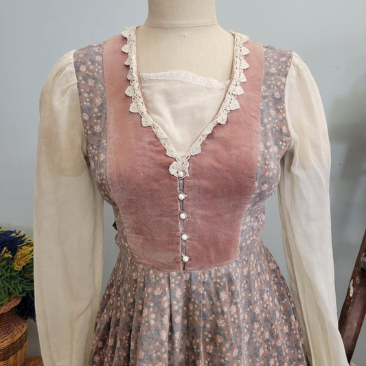 vtg 70s GUNNE SAX DRESS // vintage size 9 mauve pink velvet floral prairie dress sheer sleeve pastel cottage core calico autumn queen style