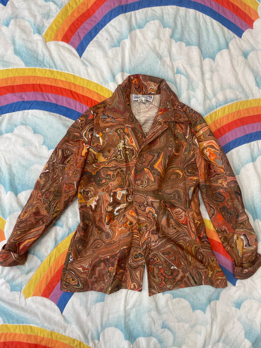 vtg 70s LAVA PRINT POLY top jacket // psychedelic art polyester dress jacket Samuel Grossman retro disco button up blouse hippie tunic 60s