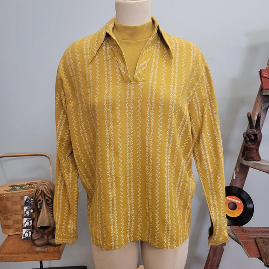 vtg 70s LAYERED RETRO YELLOW Shirt / vintage kings road shop mens medium mustard yellow pointy collar mod button down long sleeve oxford top