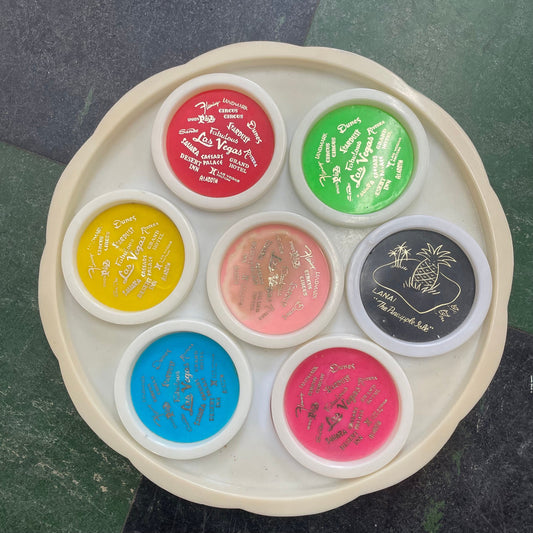 vtg 1950s LAS VEGAS COASTERS // vintage stardust flamingo riveria casino tourist souvenir pastel color palette mcm decor entertaining gift
