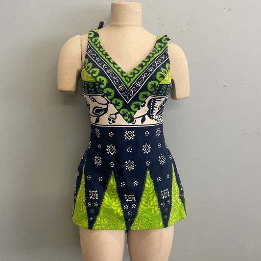 vtg 1950s COLE OF CALIFORNIA Swimsuit // vintage abstract psychedelic swimsuit dress bullet bra geometric pin up beach playsuit brand new