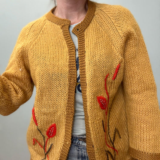 vtg 1950s GOLDEN WHEAT MOHAIR // vintage brown & yellow autumn colors harvest gold campus casuals retro mcm preppy rockabilly slouchy cardi